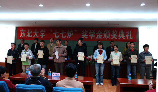 七七炉奖学金始于1997年,在原东北工学院院长陆钟武院士的提议之下,由七七级冶金炉专业校友穆放先生组织发起的,并于1998年正式开始奖学金的评选和发放工作。该奖学金的设立凝结了七七炉校友对母校的深厚感情,他们旨在尽自己的一份力量,帮助那些品学兼优、家境贫困的在校本科生和研究生,激励他们刻苦钻研,锐意进取,力争成为发展热工科学事业的有用人才。近十年来,由于有以穆放校友为主的七七级冶金炉专业众多校友的慷慨捐赠,有百余名热能专业的学子获得了该项奖学金,他们深刻感受到了来自学长们的关爱和帮助,更为他们设立奖学金的理念和精神所感动。今年,共有40名学生申报了七七炉奖学金,经过奖学金管理委员会的认真评审,从中评出了17名获奖者。
