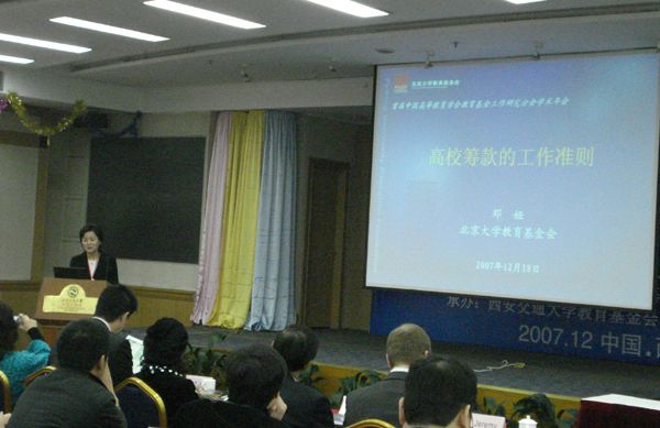 北京大学教育基金会秘书长邓娅做题为《高校筹款的工作准则》报告