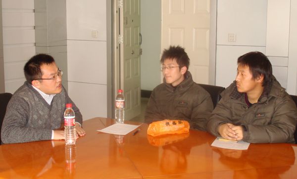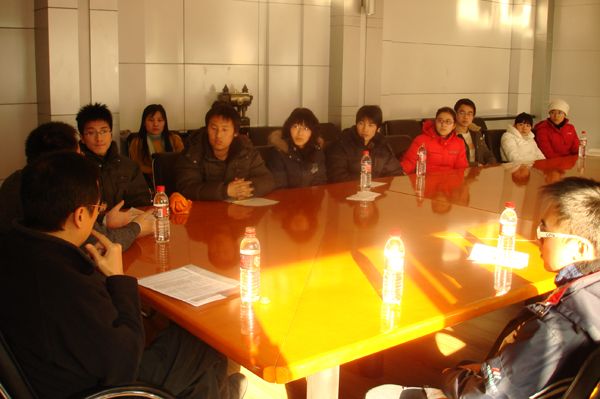 04届工商管理专业学生、曾受资助学生、现北京禾田空间广告设计公司总经理蔡国占与自己资助的同学座谈