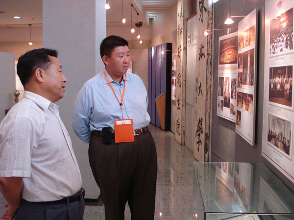 魏向前秘书长向李大壮介绍并讲解东北大学校史