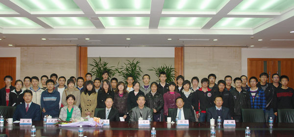 获奖学生与姜礼彪先生及出席仪式的领导嘉宾合影留念