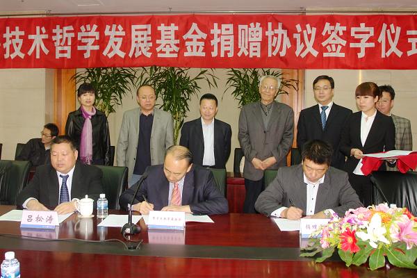 10月17日下午,“东北大学科学技术哲学同学会”代表日本龙高株式会社董事长刘玉劲、上海绿谷集团董事长吕松涛一行来到我校,与张学良教育基金会签订《陈昌曙技术哲学发展基金》捐赠协议。校党委书记孙家学,校长助理张国臣,“陈昌曙技术哲学发展基金”名誉理事长、文法学院博士生导师远德玉教授,文法学院院长张雷,文法学院副院长陈凡也一并出席了签字仪式。