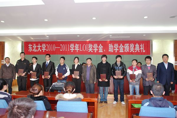 3月8日下午,东北大学2010—2011学年LOI奖学金、助学金颁奖典礼在汉卿会堂402室举行。洛伊热工工程(天津)有限公司副总经理、校友孙立军先生一行来校并亲自为获奖学生颁奖。东北大学材料与冶金学院院长张廷安,校友会、校董会、基金会管理办公室主任李鹤,学生指导服务中心副主任刘青瑞参加了颁奖典礼。材料与冶金学院党委副书记兼副院长贺翔主持典礼。高吉祥等20名学生获得此次LOI奖、助学金。
