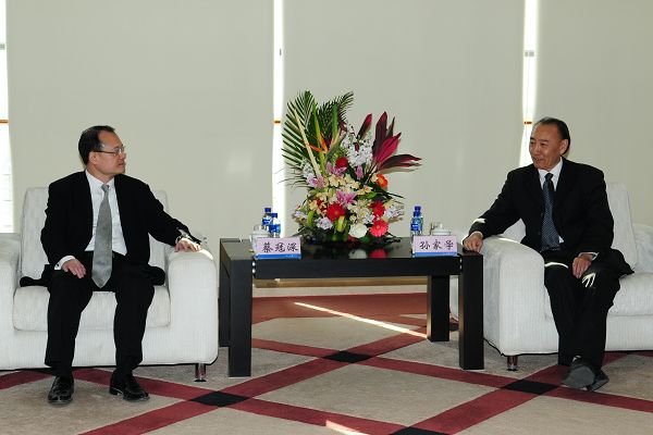 当天下午,校党委书记孙家学,校党委副书记、纪委书记杨明在汉卿会堂203室接见了来访客人。孙家学首先将我校一年来制定十二五规划、调整学校办学定位目标,召开教代会、党委会等重要会议,科研经费的重大突破,实施目标管理,筹划2013年东北大学90周年校庆等情况向蔡冠深一行做了简要介绍。蔡冠深首先对学校2013年90周年校庆表示祝贺,希望学校以新校区建设为契机,不断提高软硬件设施、提高综合实力,开创学校发展的新篇章。