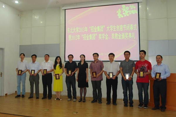 6月18日,东北大学2013年度“招金集团”大学生创意节闭幕式暨2012年“招金集团”奖学金、奖教金颁奖典礼在图书馆报告厅举行。招金集团人力资源总监王万红,招金教育产业发展有限责任公司总经理邵爱东,我校副校长姜茂发出席典礼。东北大学基金管理办公室主任李鹤主持颁奖典礼。