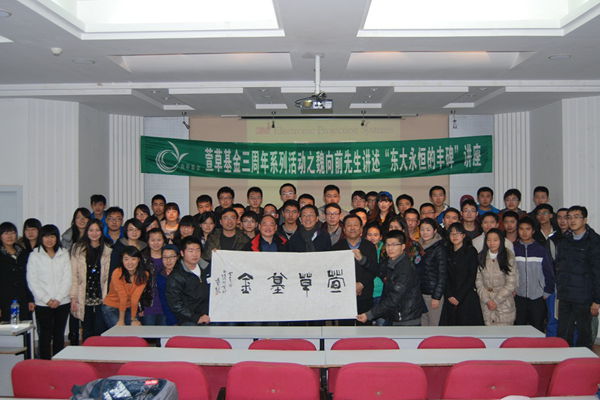据悉,当天下午举行了萱草基金三周年系列活动,包括有:周崑先生与大二的受资助萱草学子座谈、魏向前先生做题为“东大永恒的丰碑”讲座等。