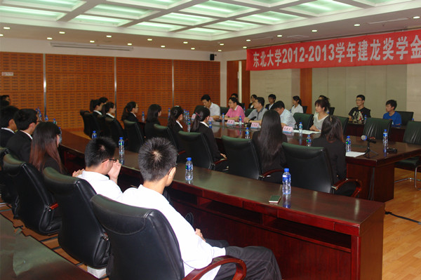 6月23日下午,东北大学2012-2013学年建龙奖学金颁奖仪式在汉卿会堂308室举行。抚顺新钢铁有限公司副总经理宋亚庆,抚顺新钢铁有限公司人力资源处处长赵相隶,校党委副书记、纪委书记杨明,校友总会、校董会、基金管理办公室相关负责人,及获奖学生代表出席了颁奖仪式。