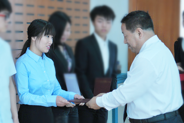 7月8日下午,东北大学2014–2015学年蔡冠深奖学金、教育建设基金奖学金颁奖仪式在汉卿会堂308室举行。新华集团中国内地业务扩展总监魏向前、沈阳新华集团房地产公司办公室主任刘梦菲、我校基金会办公室主任李鹤出席颁奖仪式。