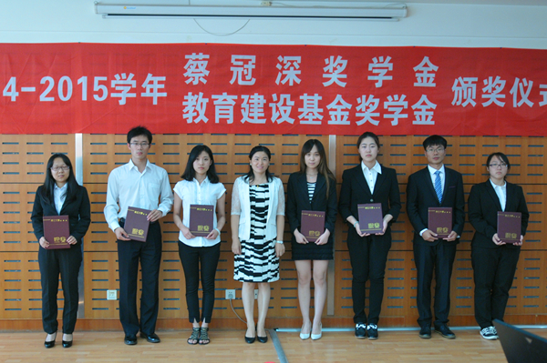 经个人申报、学院推荐、学生工作处审核、奖学金评审委员会审批,贾利敏等30名同学获得蔡冠森奖学金;骆宁等16名同学获得教育建设基金奖学金。魏向前和刘梦菲为获奖同学颁发了证书。