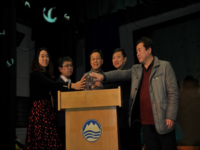 周崑同魏向前、马天威、王纯武、姜楠一起点亮了爱心树。在场的萱草学子舞动荧光棒共同围绕在爱心树前,一同合唱歌曲《相亲相爱》。 活动结束后,所有嘉宾同萱草学子及工作人员在舞台上合影留念。