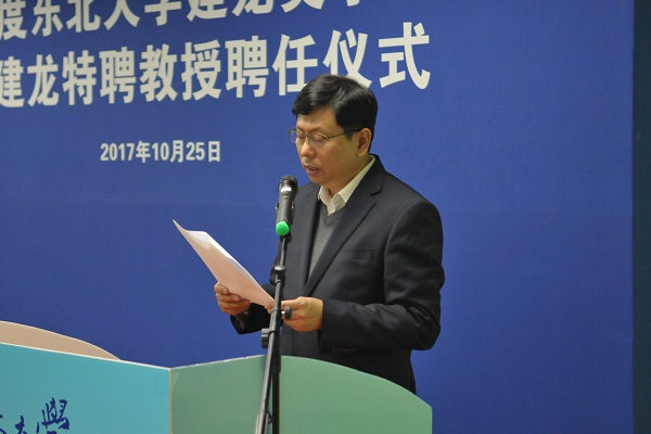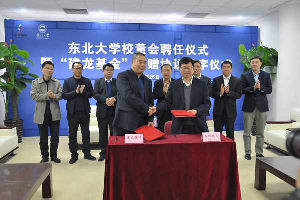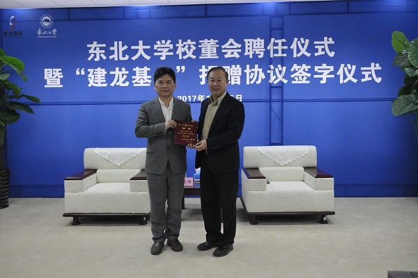 10月25日下午,建龙集团董事长张志祥校友一行来校出席校董会聘任、“建龙基金”捐赠协议签字、“建龙学术报告厅”揭牌、2017年度东北大学建龙奖学金颁奖暨建龙特聘教授聘任仪式。校长赵继、副校长孙雷出席仪式。