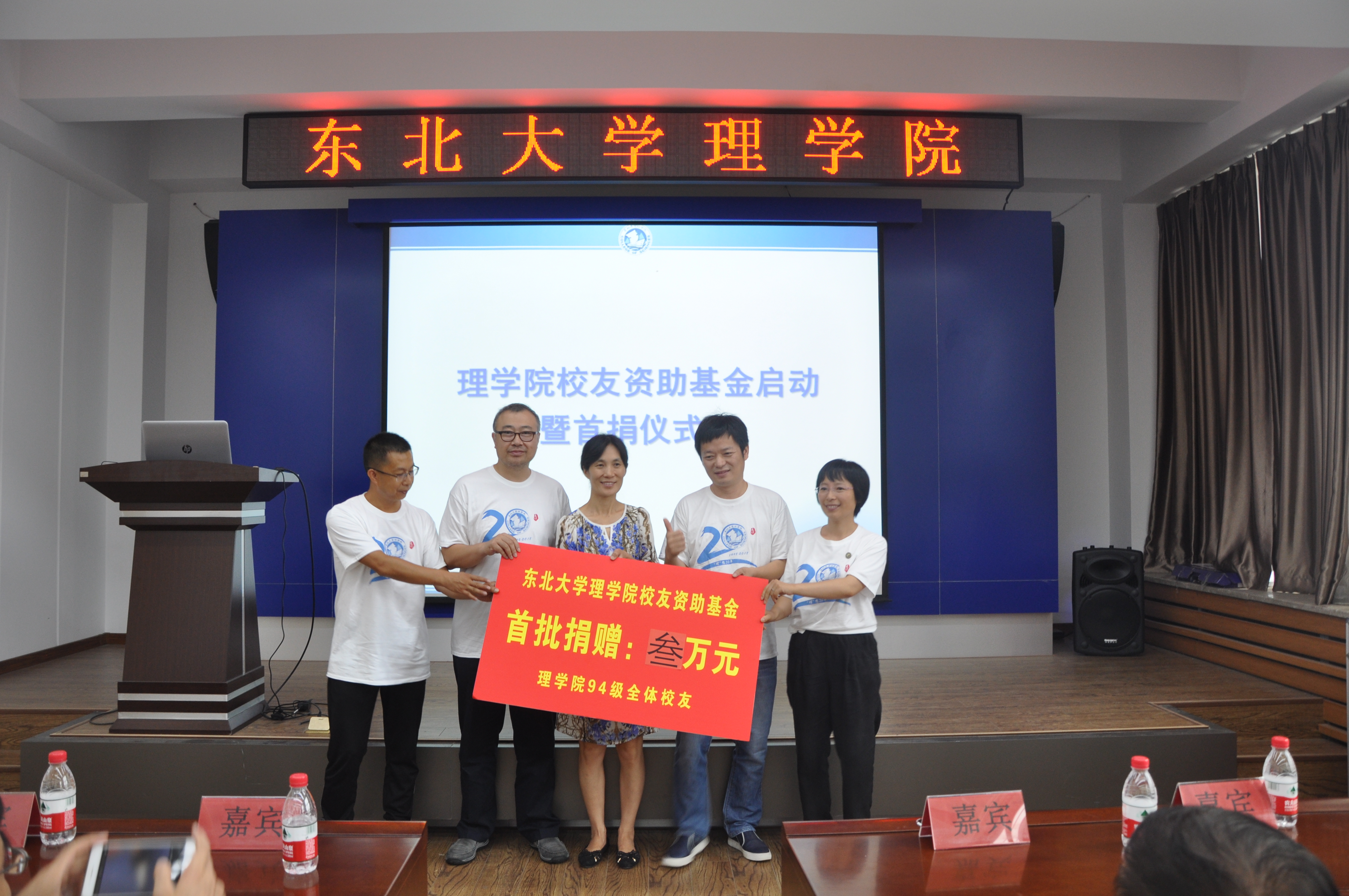 2018年 7月14日,在学校建校95之际,50余名理学院1994级校友从国内外各地返回学校,共庆毕业20周年。为了回报母校,东北大学理学院94级校友发起设立东北大学理学院资助基金,用于支持学校发展建设、帮扶理学院家庭经济困难学生顺利完成学业。
