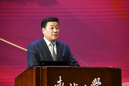 11月13日,东北大学与新华集团合作三十周年纪念大会暨蔡冠深博士报告会在蔡冠深报告厅举行。全国政协常委、新华集团主席蔡冠深,辽宁省政协副主席高科,辽宁省委统战部副部长王东秀,辽宁省政协副秘书长赵永清,辽宁省政府外事办公室副主任刘天雨,新华集团执行董事蔡隽思,新华集团中国内地行政总监余正生,新华集团东北区总经理崔彤,东北大学党委书记熊晓梅,校长赵继,副校长孙雷出席会议。