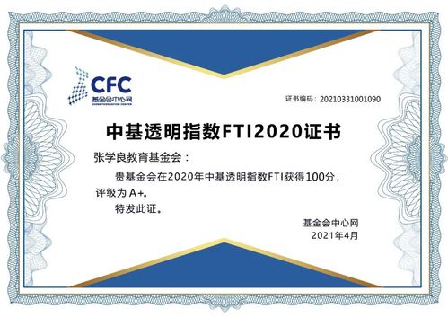 近日,“‘自律自主 高效透明’——中基透明指数FTI2020发布会”在北京举行。会上公布了大型公募基金会、中小型公募基金会、大型非公募基金会、中小型非公募基金会、大学基金会五个榜单。在全国2478家基金会中,张学良教育基金会以满分的成绩持续排名并列第一名,并获最高A+评级,是四所满分高校基金会之一。