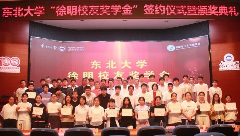 6月6日,东北大学“徐明校友奖学金”签约仪式暨颁奖典礼在科学馆建龙报告厅举行。杰出校友、校董会董事、1969届采煤专业徐明,光明日报高级记者苗家生,艺术学院原党委书记邓美凤,校关工委常务副主任窦盛功,张学良教育基金会办公室副主任展成,资源与土木工程学院相关领导和老师,获奖学生代表及资土学院百余名本科生参加活动。资土学院党委副书记、副院长(兼)刘婉婷主持活动。